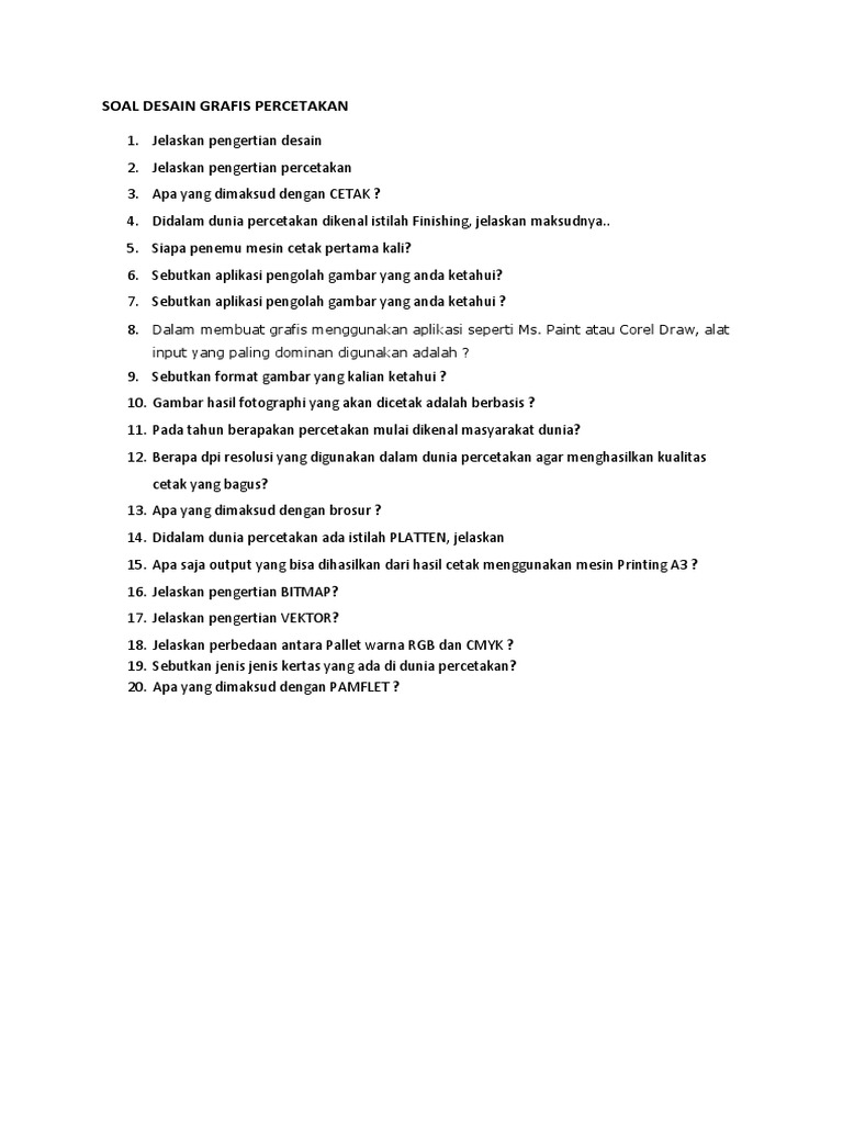 Contoh Soal Hots Desain Grafis Pdf from imgv2-1-f.scribdassets.com Maybe you would like to learn more about one of these? Check spelling or type a new query. We did not find results for: